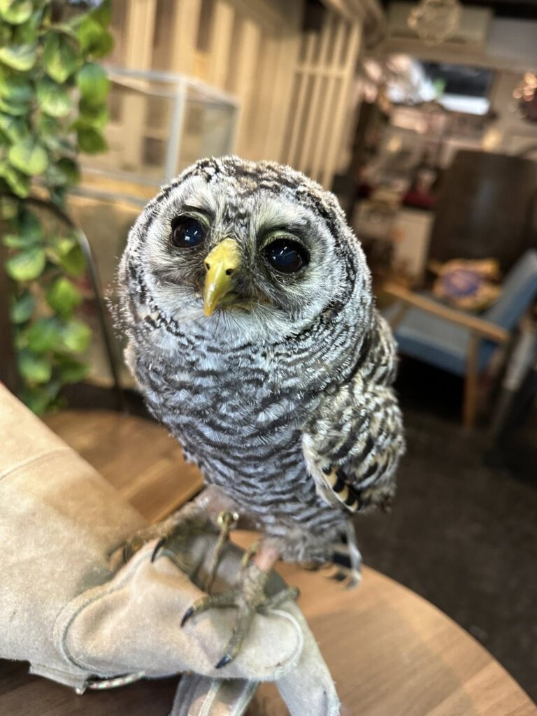 当店で育てたフクロウは、最終的にお客様のペットになることを念頭に置きながら、人慣れするよう1羽1羽大切に育てています。全国からご来店いただいても気に入っていただけるオウルドベースブランドのフクロウたち。期間中のご来店、お待ちしております!
