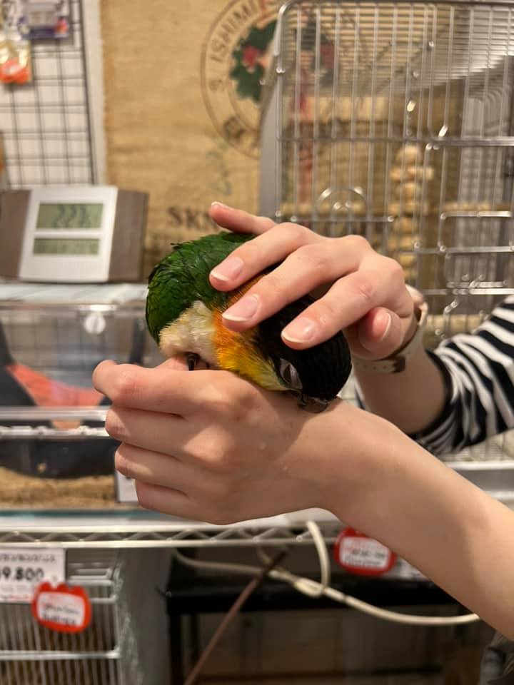 今年生まれのとても人懐こい子です。すでにおはようひゃっほーなど、ごにょごにょおしゃべりも大好きで、上手になりそうな予感がします。中型インコを探している方は気に入ると思いますのでぜひ会いに来てみてください。