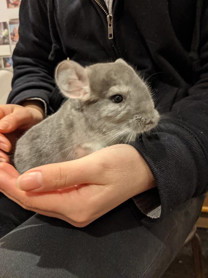 インスタの動画などで人気のチンチラ。もふもふで、ぬいぐるみみたいで、キョトンとした顔したり、おやつをねだったり、くしでとかしてもらってうっとりしたり、かと思えば忍者のように飛び回ったり。本当可愛いですよね。意外と懐く癒しの存在です♥少し大きめの体も存在感があって嬉しい。
