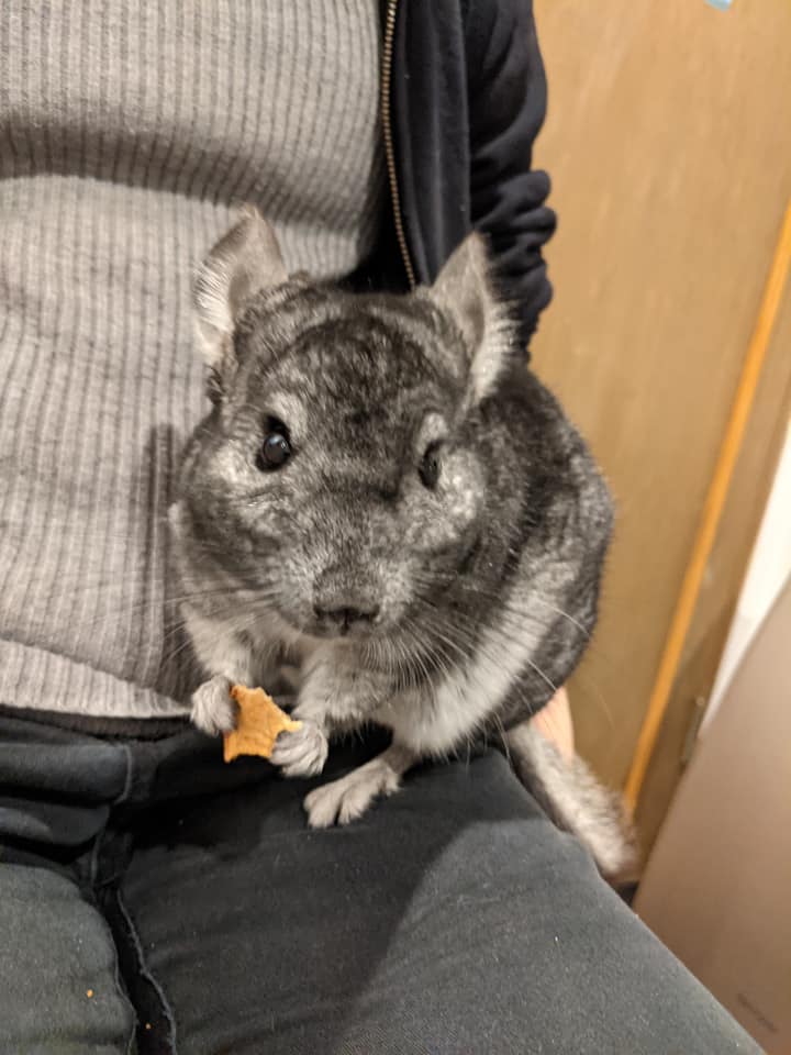 はじめてチンチラ飼いさんになる方、大人しくて優しいこの子がオススメです。のんびりした性格で扱いやすいと思います。お目目も大きくて可愛い👀