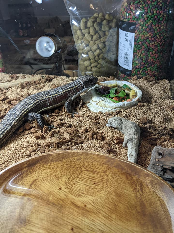 トカゲ初心者にはこちら。価格も手ごろで扱いやすく、比較的強い種類のオニプレートトカゲ。初心者用かぁと思いきや、ご飯を食べる可愛いお顔にもうハート撃ち抜かれました👼