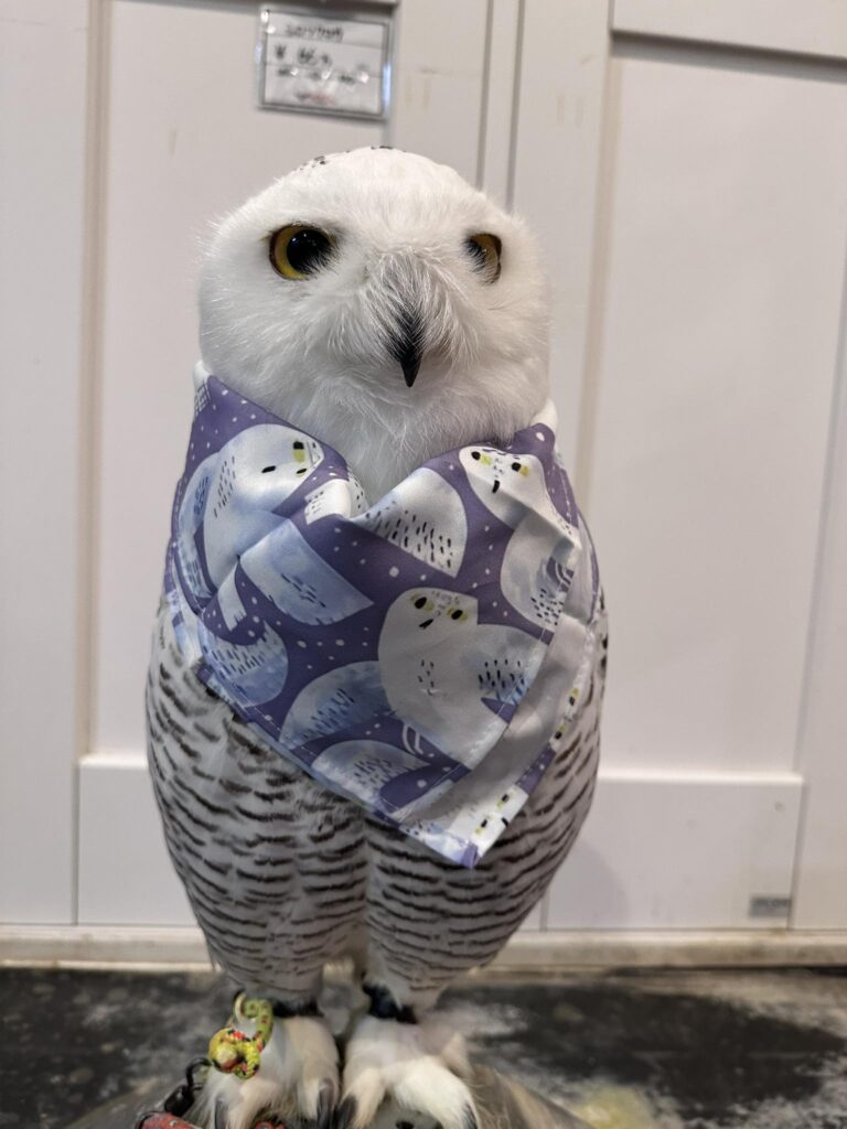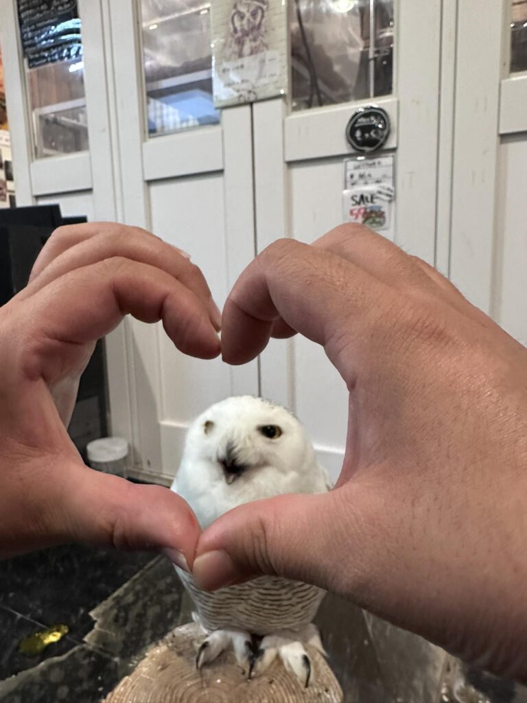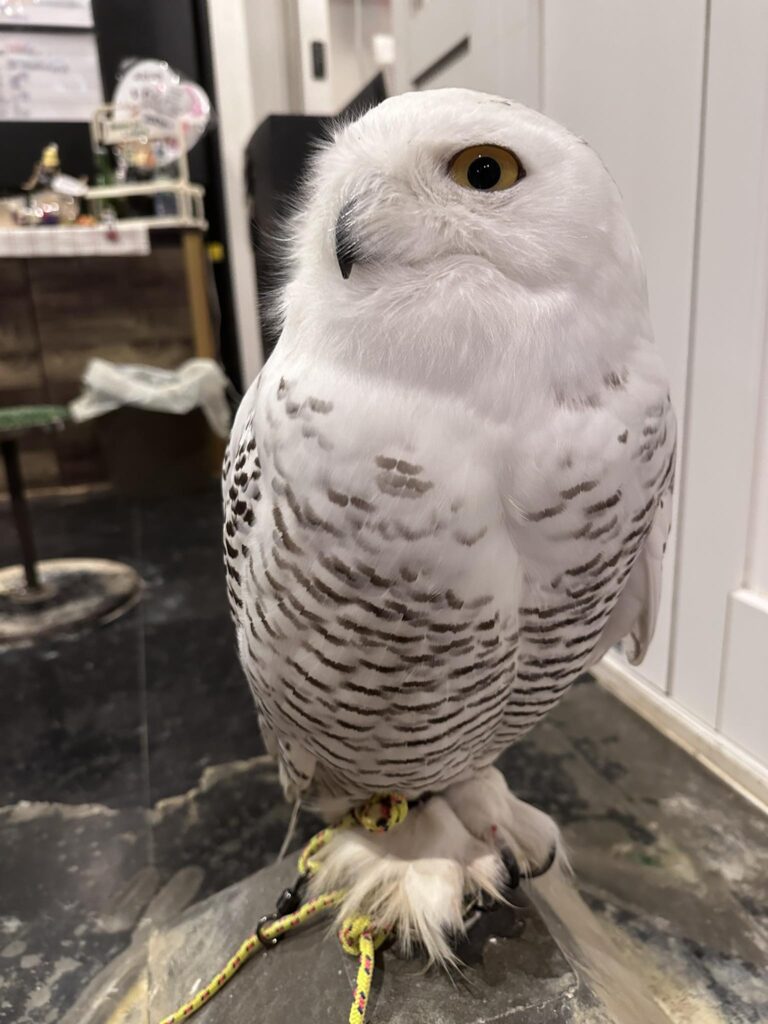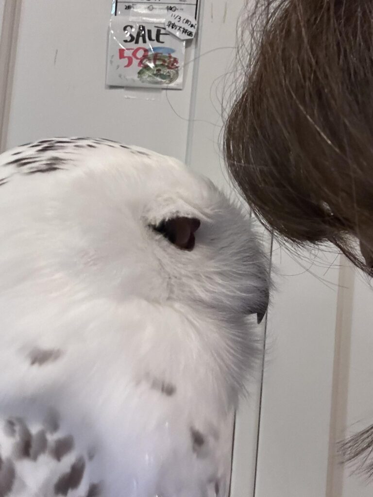 シロフクロウは元来デリケートな性格なので、この慣れ具合は本当に珍しいんですよ❣️