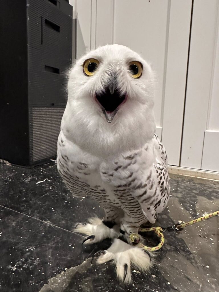 シロフクロウはハリーポッターのフクロウ☆ヘドウィグでも有名で、とても人気が高くお問い合わせが多い種類です。オウルドベースにもむっくさんという看板シロフクロウが活躍してます。